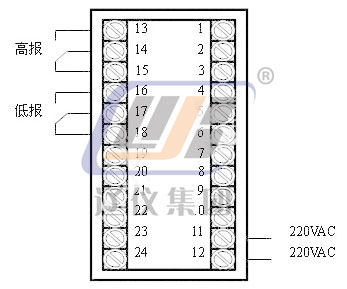● 報警控制:高限報警,低限報警, 報警燈及相應的繼電器輸出,同時伴有聲響和數字閃爍,當用戶確認后,按消音鍵可消除聲響和數字閃爍。